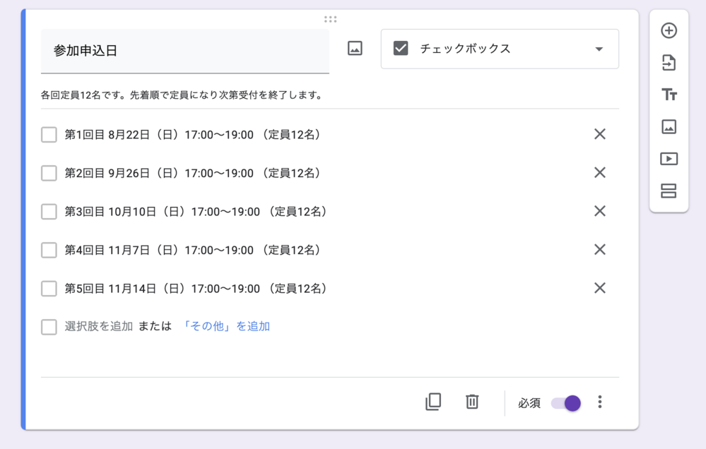 Googleフォームで複数回答可能な選択肢に それぞれ定員を Yahoo 知恵袋